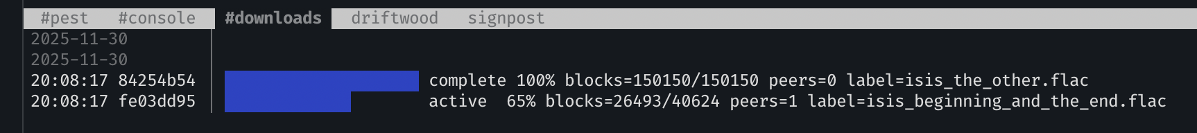 s1gnp0st[asciilifeform]: 3) station A asks immediate peers HAVE $hash, compiling a list of responders within a time window.
